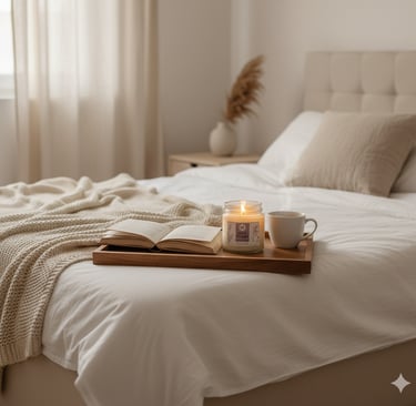 Un baño templado, una infusión suave y una vela de aromaterapia crean el ritual perfecto.